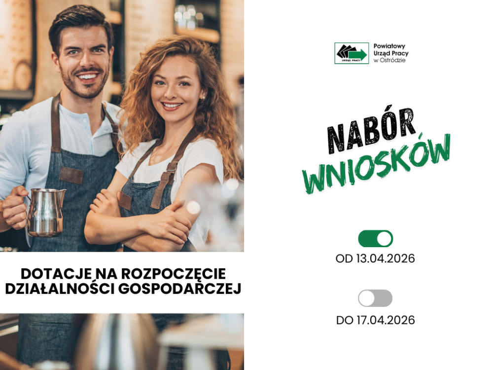 NABÓR WNIOSKÓW O DOTACJE W DNIACH 13 - 17 KWIETNIA 2026 - Powiatowy Urząd Pracy w Ostródzie